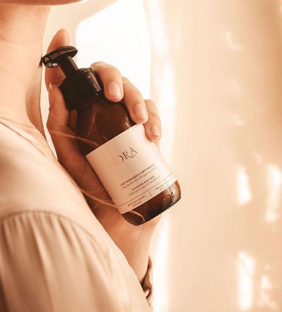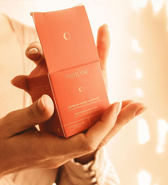 Indrani Cosmetics s’engage pour l’environnement en privilégiant des matières comme le verre ou le plastique recyclés.